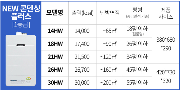 셋째, 거주지의 평수를 정확히 알아야 합니다. 보일러 모델을 선택할 때 평수에 따라 보일러 용량이 결정됩니다.