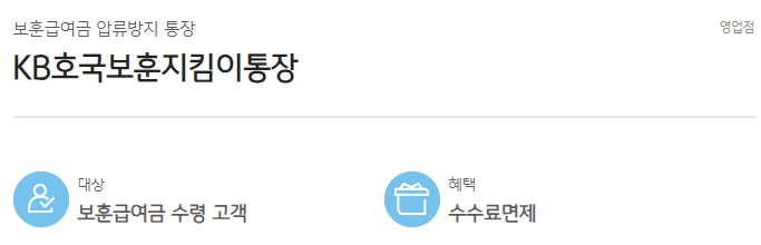 8. 호국보훈지킴이통장 : 국가를 위해 희생하고 공헌하신 국가유공자 및 그 유가족 등의 생활을 위해 지급되는 보훈급여금 등이 압류되지 않도록 하는데 그 목적이 있습니다. 이는 국가보훈처에서 지급하는 것으로 보훈급여금, 참전명예수당 등이 해당됩니다.