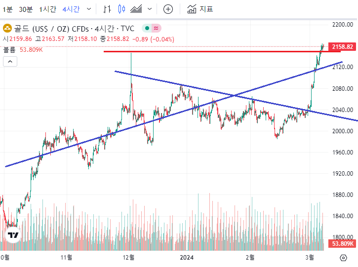 올해 금리 인하에 대한 전망을 예측하고 있습니다. 이에 시작도 하지 않은 금리인하로 금값 상승이 선반영 된 것으로 보여집니다. 아마도 6월에 실질적인 금리 인하가 발표되면 금값은 더 오를 것으로 예상됩니다. 이는 전체적인 흐름으로 보았을 때 금리 인하는 예정된 순서로 보여지고 이를 뒤바꿀 요인이 보이지 않기 때문입니다.