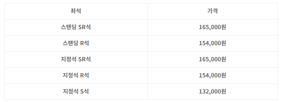 2024 싸이 흠뻑쇼 티켓 가격입니다. SR석은 스탠딩석과 지정석 구분없이 175,000원입니다. 그리고 R석도 스탠딩석과 지정석 구분없이 165,000원이빈다. 또한 시야 제한석의 경우는 SR서과 R석에 비해 저렴한 145,000원에 예매할 수 있습니다.
